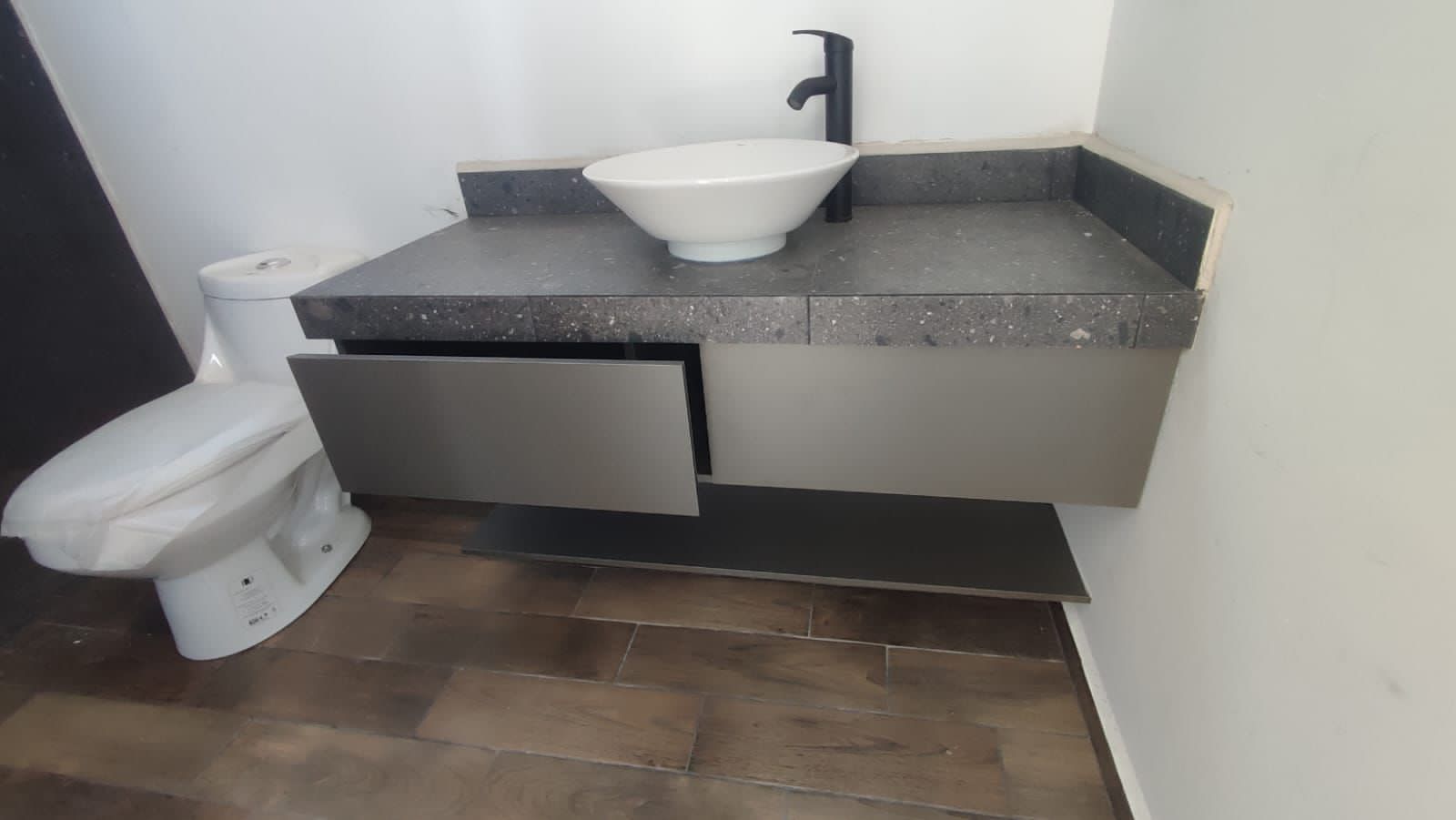 Casa nueva de dos niveles con 4 recámaras (una en planta baja), 3 baños, sala, comedor, cocina equipada, jardín , alberca, garaje para 2 autos y vigilancia